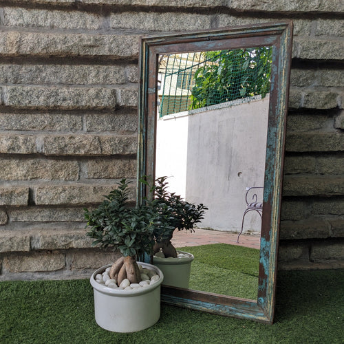Distressed Blue Wooden Frame with mirror