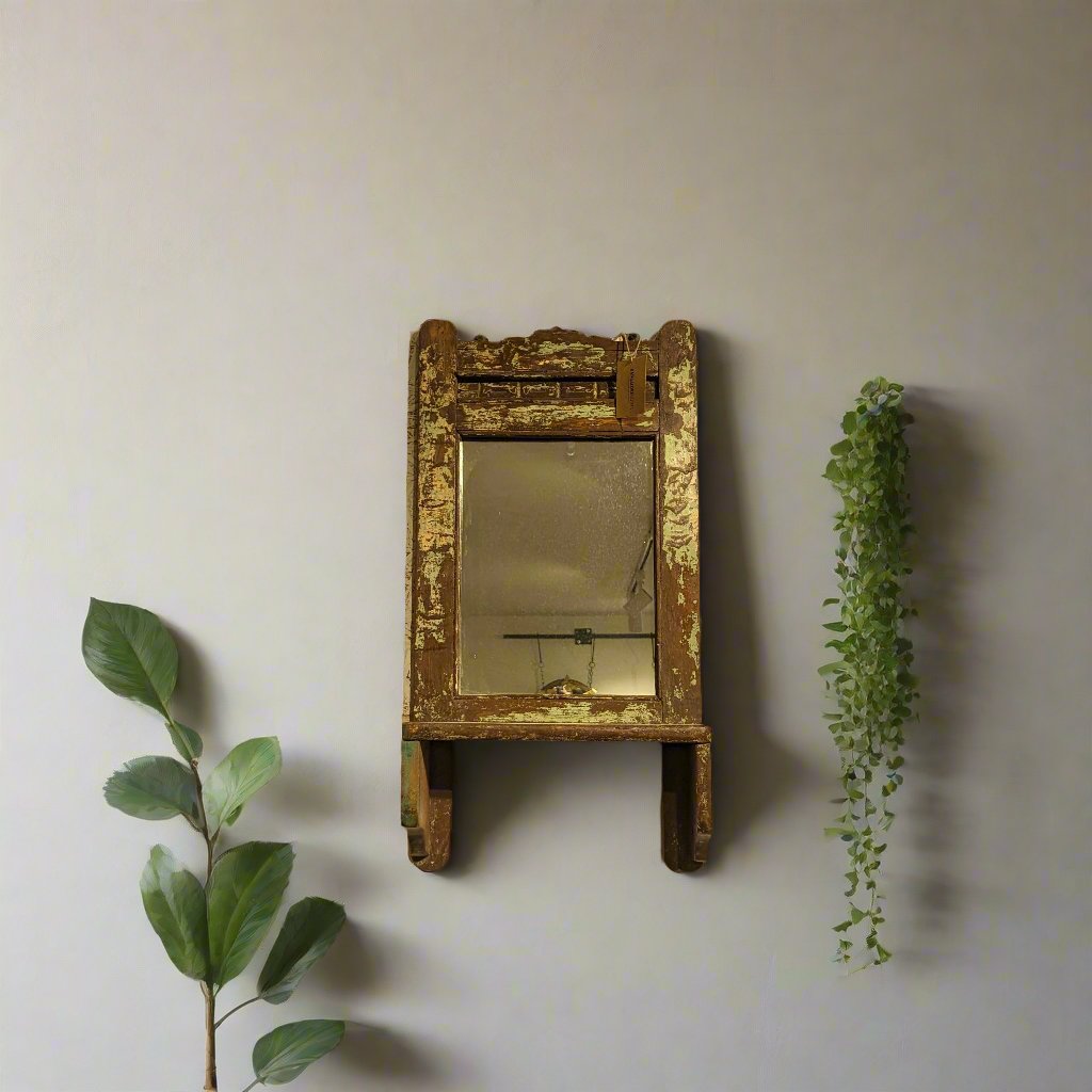 Vintage Wall Mount Candle Stand in distressed Cream with mirror