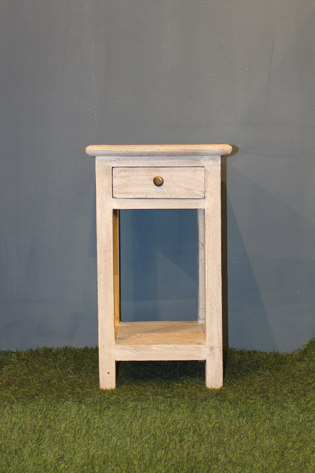 A wonderful bohemian style bedside table with beautifully detailed hand carving work and metal embelishments...