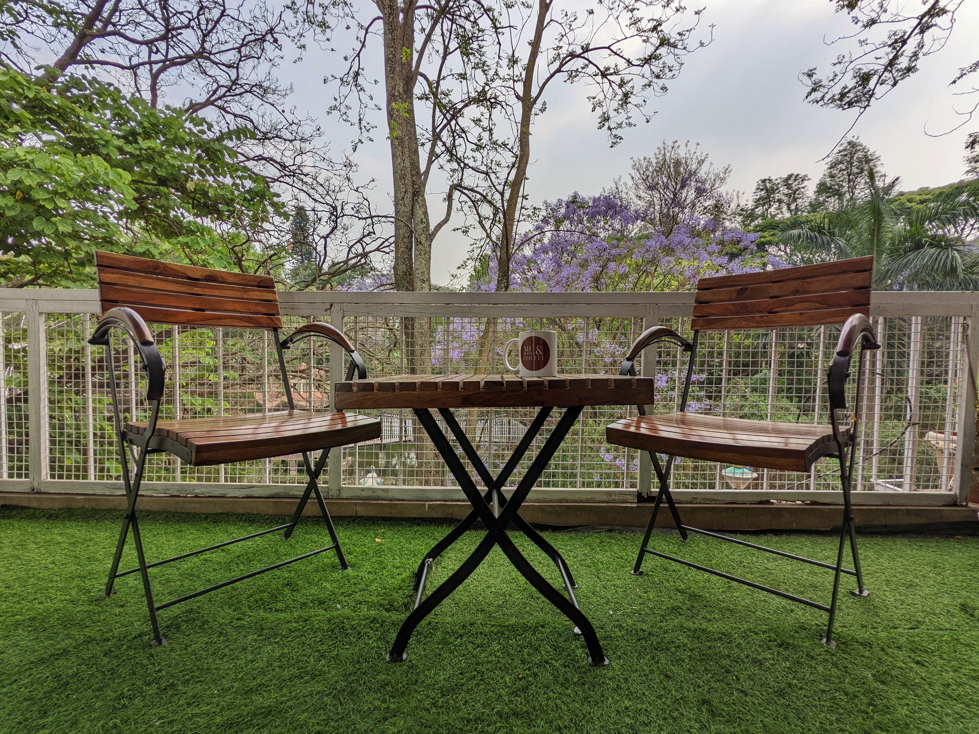 Looking to add some comfort and aesthetics to your garden or your balcony? Get this beautiful Table Chair Set featuring an elegant design in wood with a strong metal built.